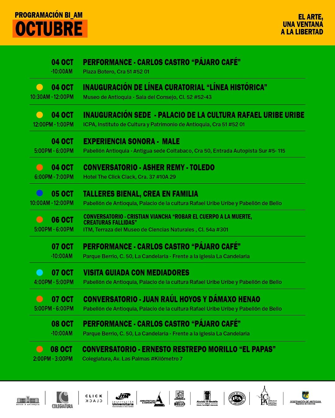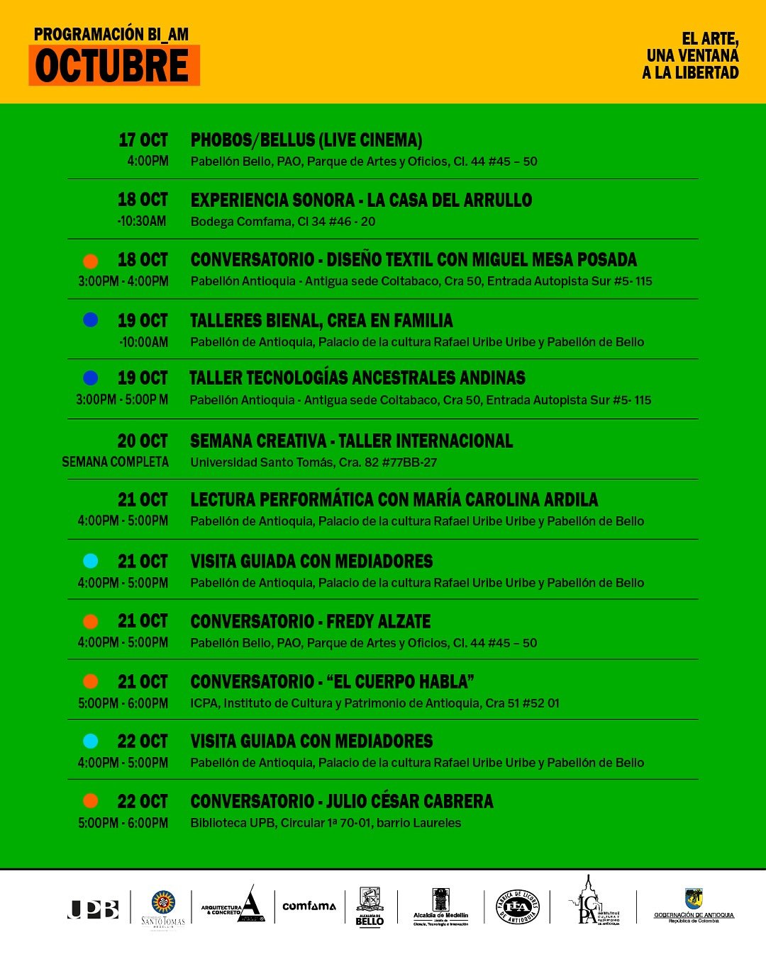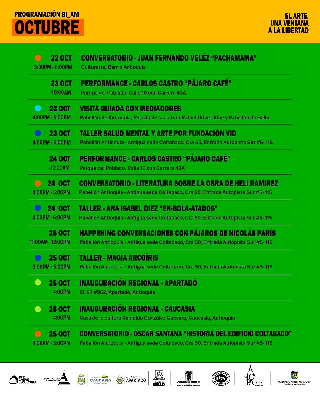 Concebida como un laboratorio de creación y pensamiento en torno a la libertad, busca dinamizar la escena artística, fortalecer la cohesión social, activar la economía creativa y posicionar a Antioquia en el mapa cultural internacional.