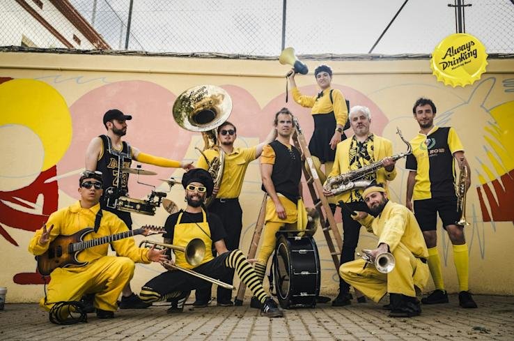 Agrupación que celebra la vida mediterránea en la calle, con música y humor como protagonistas.