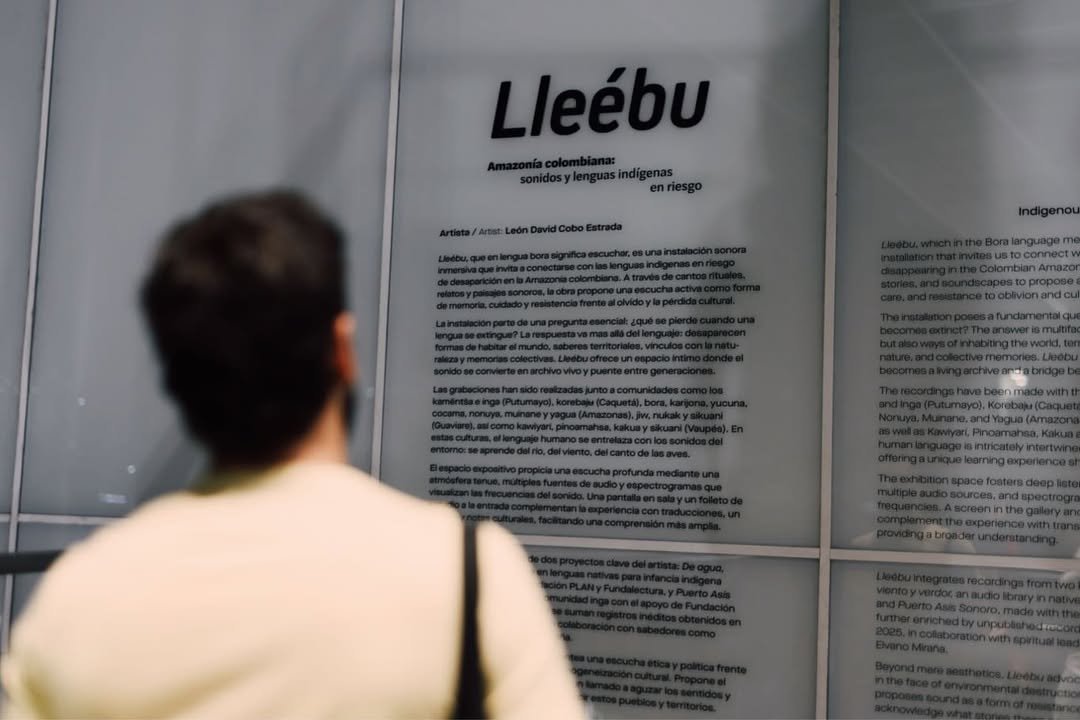 «Lleébu», que significa «escuchar» en lengua Bora, plantea que la extinción de una lengua implica también la pérdida de memorias, saberes y formas únicas de habitar el mundo.