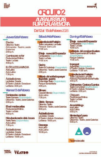 La Ruta sumará la participación de diversas agrupaciones del teatro bogotano con obras que abordan temas como la memoria, el cuerpo, el territorio, el conflicto y la infancia.