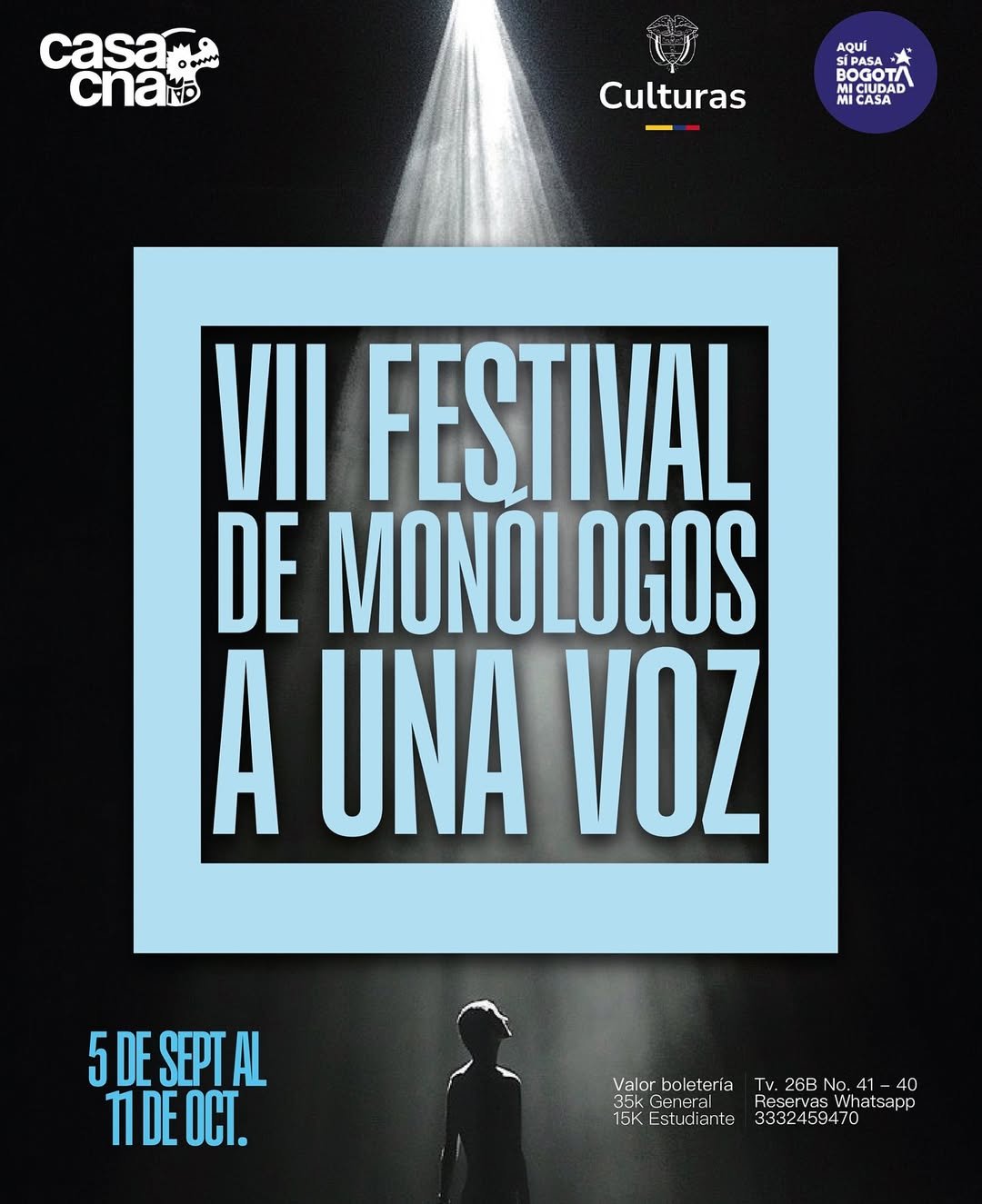 La sexta edición del Festival de Monólogos «A una voz», del 5 de septiembre al 11 de octubre, cuenta con el apoyo del Ministerio de Cultura y el Instituto Distrital de las Artes (IDARTES).