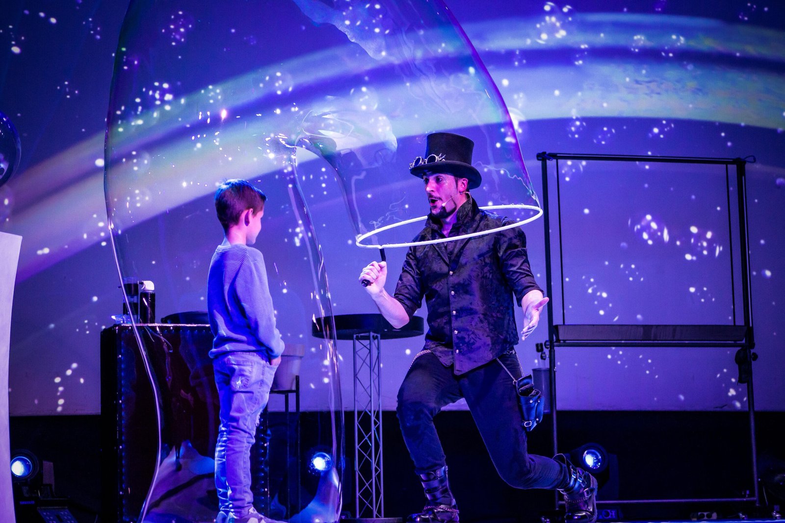 Este show sensorial, que mezcla fantasía y ciencia, invita a grandes y chicos a vivir una experiencia mágica con burbujas, luces y colores.