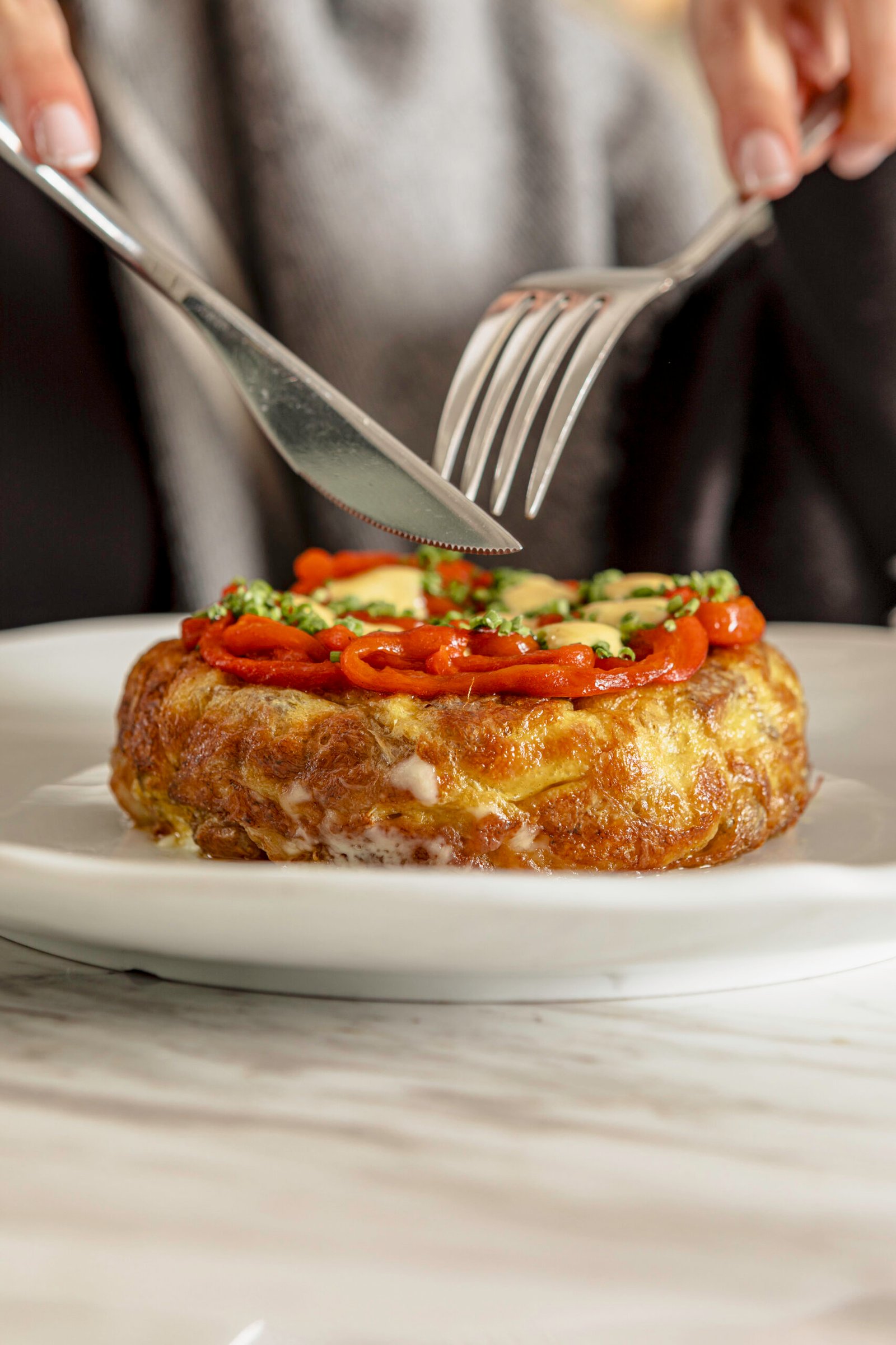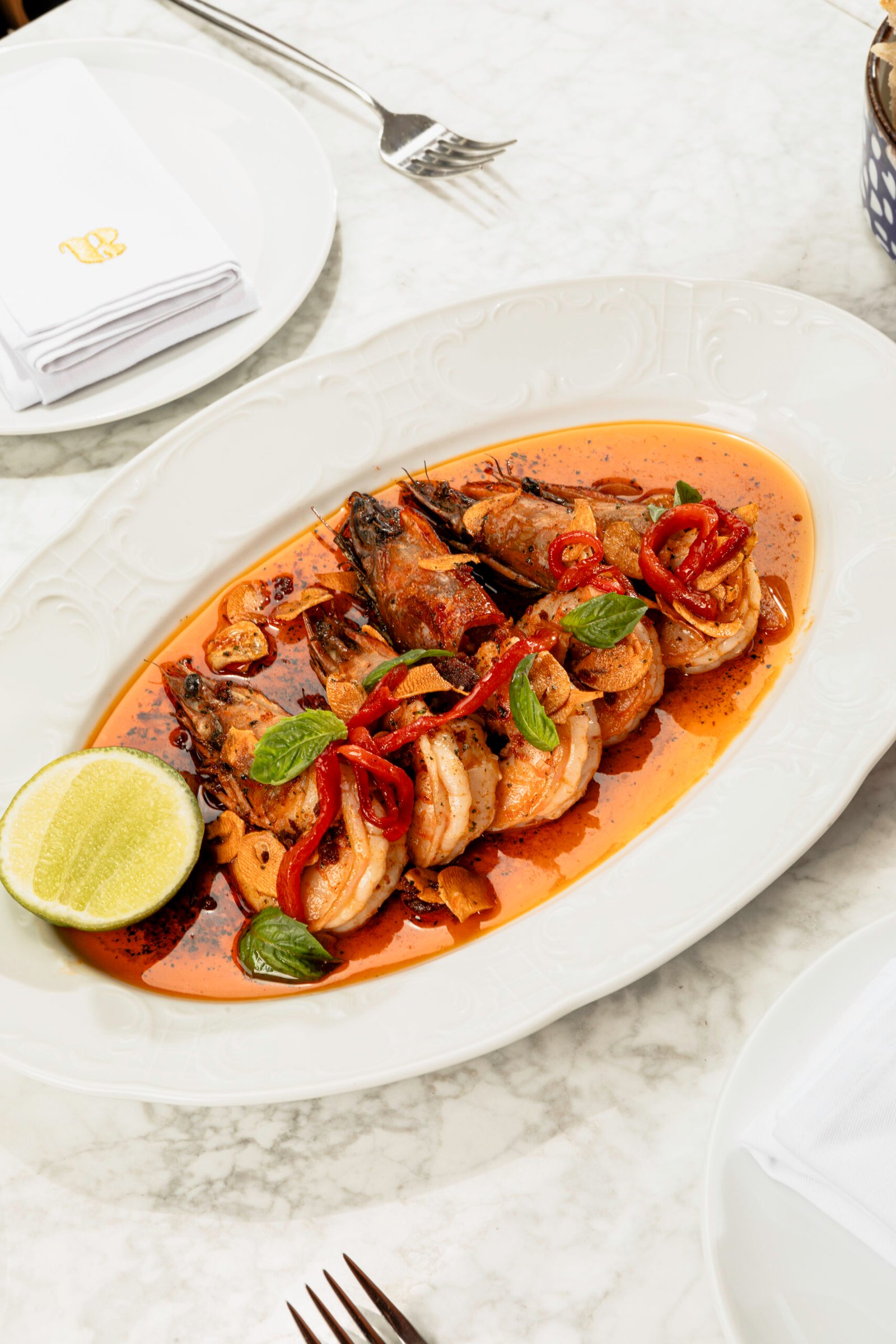 Se mantienen platos icónicos como los huevos estrellados con txistorra, la tarta vasca de queso y el arroz cremoso de gambas, sello distintivo del restaurante por su equilibrio entre técnica española y producto local.