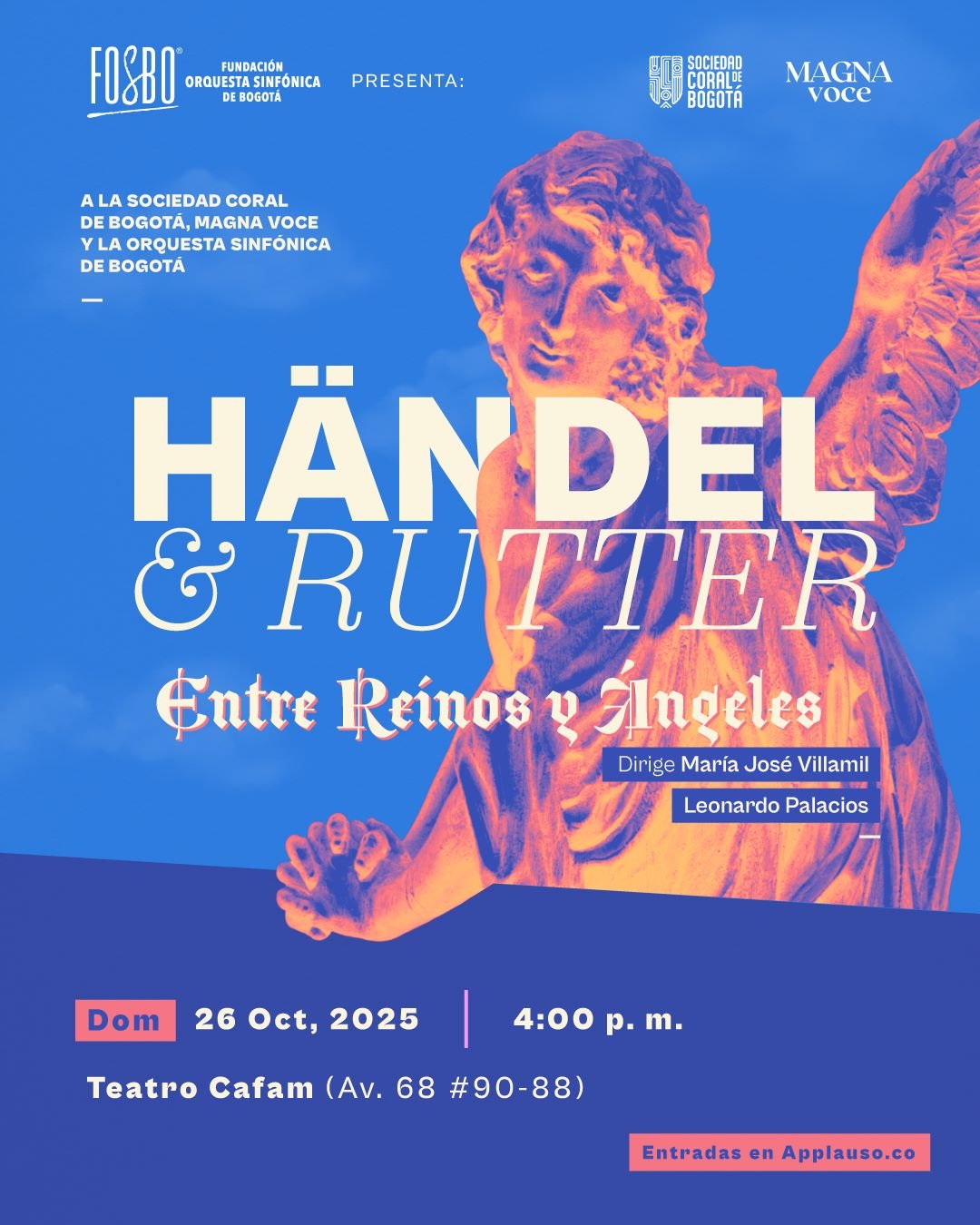 La Sociedad Coral de Bogotá, el Coro Magna Voce y la Orquesta Sinfónica de Bogotá ofrecerán un concierto que une el barroco y la música coral contemporánea, se trata de Handel & Rutter: Entre reinos y ángeles.