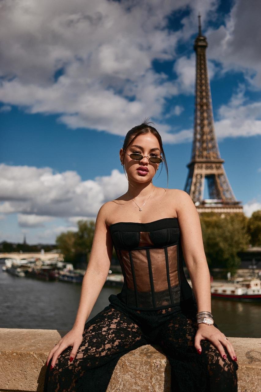 Concebida entre París y Madrid, la propuesta explora la dualidad entre fragilidad y fuerza con prendas que se ajustan al cuerpo como una segunda piel, inspiradas en la alta costura parisina y en técnicas artesanales como el plisado, el encaje y la corsetería.