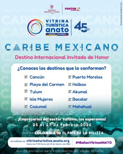 Bajo el lema “Colombia Abierta al Mundo”, la edición 45 de Vitrina Turística de ANATO, que se realizará el 25, 26 y 27 de febrero, ofrecerá más espacios de exhibición, aprendizaje y conexión, reafirmándose como la plataforma de negocios más importante para promocionar a Colombia ante el mundo y fortalecer alianzas estratégicas en la industria turística.